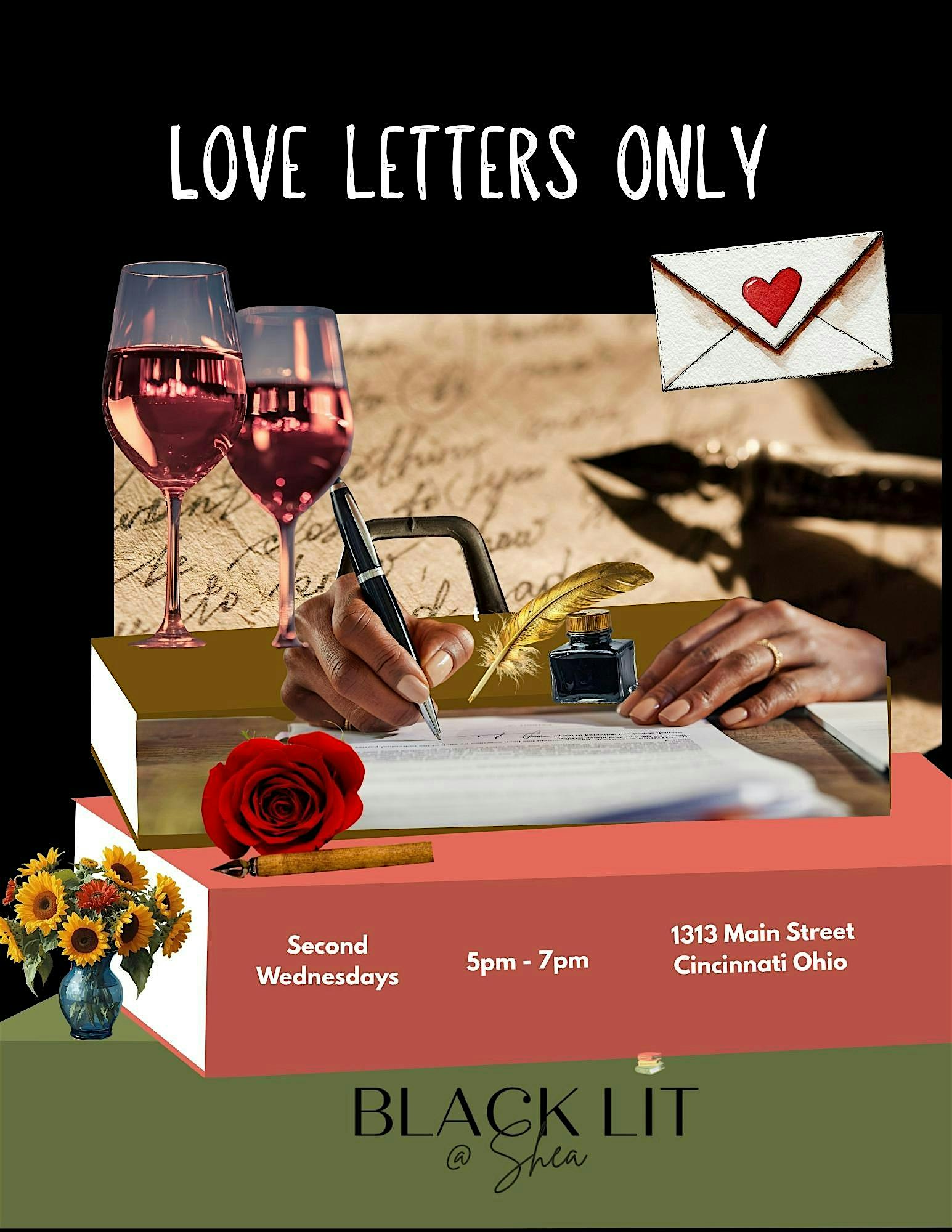 by admin13Feb LOVE LETTERS ONLY at Shea Candle Co. – Cincinnati, OH LOVE LETTERS ONLY at Shea Candle Co. – Cincinnati, OH 1 1 people viewed this event. a monthly gathering that centers love as we create letters/cards/art while listening to soulful vibes and enjoying wine and light bites. Tickets-RSVP Link Date And Time Wednesday, May 13th, 2026 09:00 PM (PST) Venue Shea Candle Co. Location 1313 Main Street, Cincinnati, OH 45202 Event Types Party or Social GatheringPerforming & Visual Arts Event Category CincinnatiOhio Share With Friends Facebook Twitter Linkedin Xing Pinterest Share This Post: