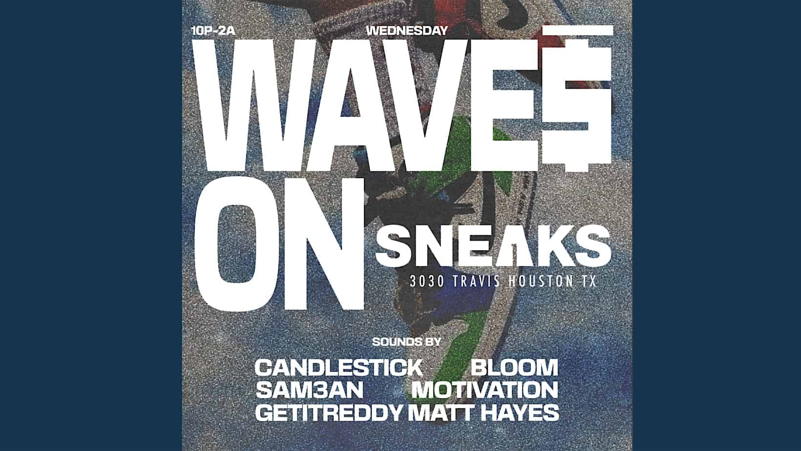 by admin14Feb WAVES ON BRAND at Sneaks Coffee Lounge – Houston, TX WAVES ON BRAND at Sneaks Coffee Lounge – Houston, TX 1 1 people viewed this event. Underground House Party Every Wednesday Night Tickets-RSVP Link Date And Time Thursday, May 14th, 2026 03:00 AM (PST) Venue Sneaks Coffee Lounge Location 3030 Travis Street, Houston, TX 77006 Event Types MusicParty or Social Gathering Event Category HoustonTexas Share With Friends Facebook Twitter Linkedin Xing Pinterest Share This Post:
