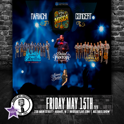 VIVA LA MUSICA featuring DANIEL PANTOYA, MARIACHI ESTRELLAS DE CHICAGO, MARIACHI PERLA DE MEXICO and ARIANA PANTOYAFriday May 15th at The Hobart Art Theater All Ages Welcome (21+ Drink with ID)6pm Doors / 7pm Showtime