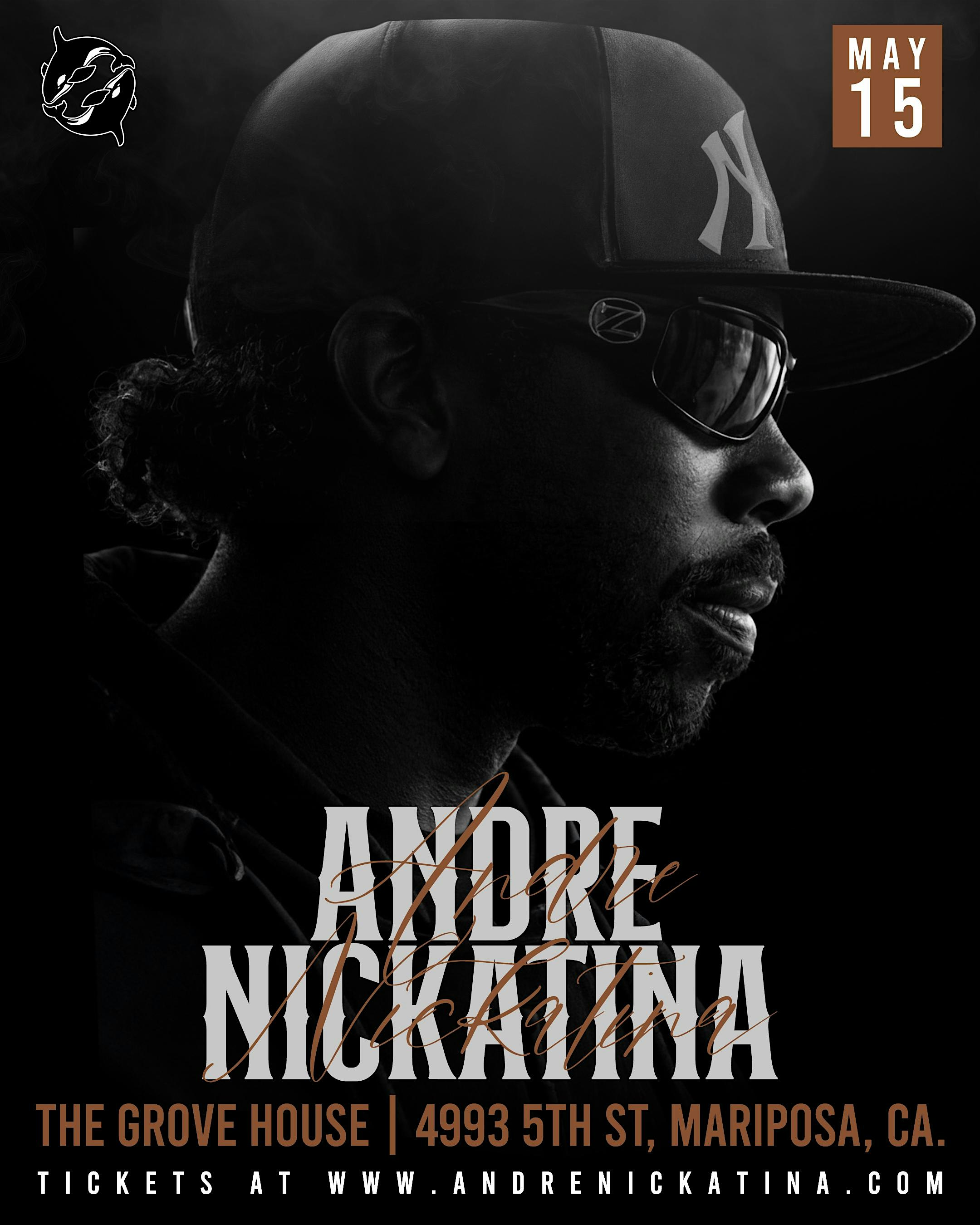 by admin13Feb Andre Nickatina at The Grove House Mariposa at The Grove House – Mariposa, CA Andre Nickatina at The Grove House Mariposa at The Grove House – Mariposa, CA 1 1 people viewed this event. Andre Nickatina Live! Tickets-RSVP Link Date And Time Saturday, May 16th, 2026 02:00 AM (PST) Venue The Grove House Location 4993 5th Street, Mariposa, CA 95338 Event Types Concert or PerformanceMusic Event Category California Share With Friends Facebook Twitter Linkedin Xing Pinterest Share This Post: