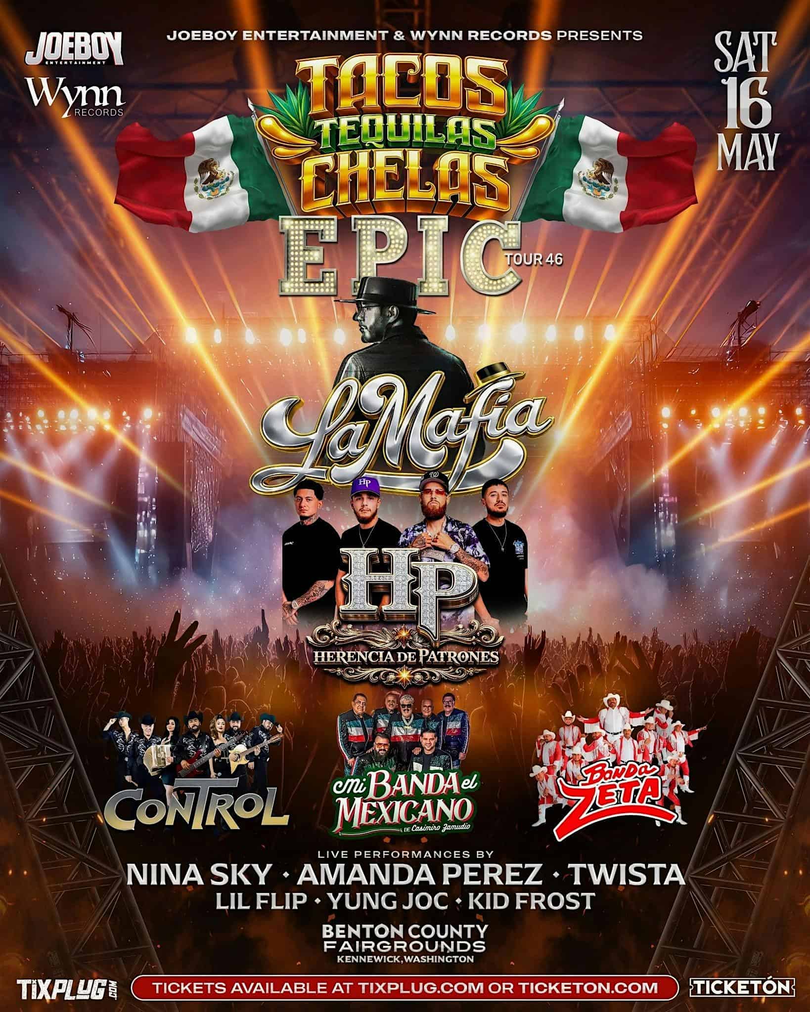 by admin14Feb Tacos Tequila Chelas Music Festival and Car Show at Benton County Fairgrounds – Kennewick, WA Tacos Tequila Chelas Music Festival and Car Show at Benton County Fairgrounds – Kennewick, WA 1 1 people viewed this event. Disfruta tacos, tequila, chelas, música en vivo y un show de carros en un día lleno de buena vibra y sabor. Tickets-RSVP Link Date And Time Saturday, May 16th, 2026 05:00 PM (PST) Venue Benton County Fairgrounds Location 1500 South Oak Street, Kennewick, WA 99336 Event Types Festival or FairFood & Drink Event Category Washington Share With Friends Facebook Twitter Linkedin Xing Pinterest Share This Post: