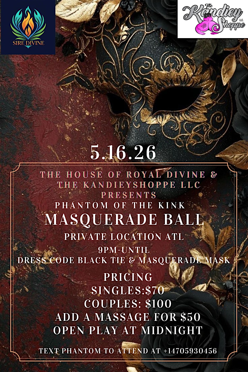 by admin13Feb Phantom Masquerade Ball at Atlanta – Atlanta, GA Phantom Masquerade Ball at Atlanta – Atlanta, GA 1 1 people viewed this event. Get ready to dance the night away in mysterious style at the Phantom Masquerade Ball, where elegance meets intrigue! Tickets-RSVP Link Date And Time Sunday, May 17th, 2026 02:00 AM (PST) Venue Atlanta Location Private location, Atlanta, GA 30007 Event Types Party or Social GatheringPerforming & Visual Arts Event Category AtlantaGeorgia Share With Friends Facebook Twitter Linkedin Xing Pinterest Share This Post: