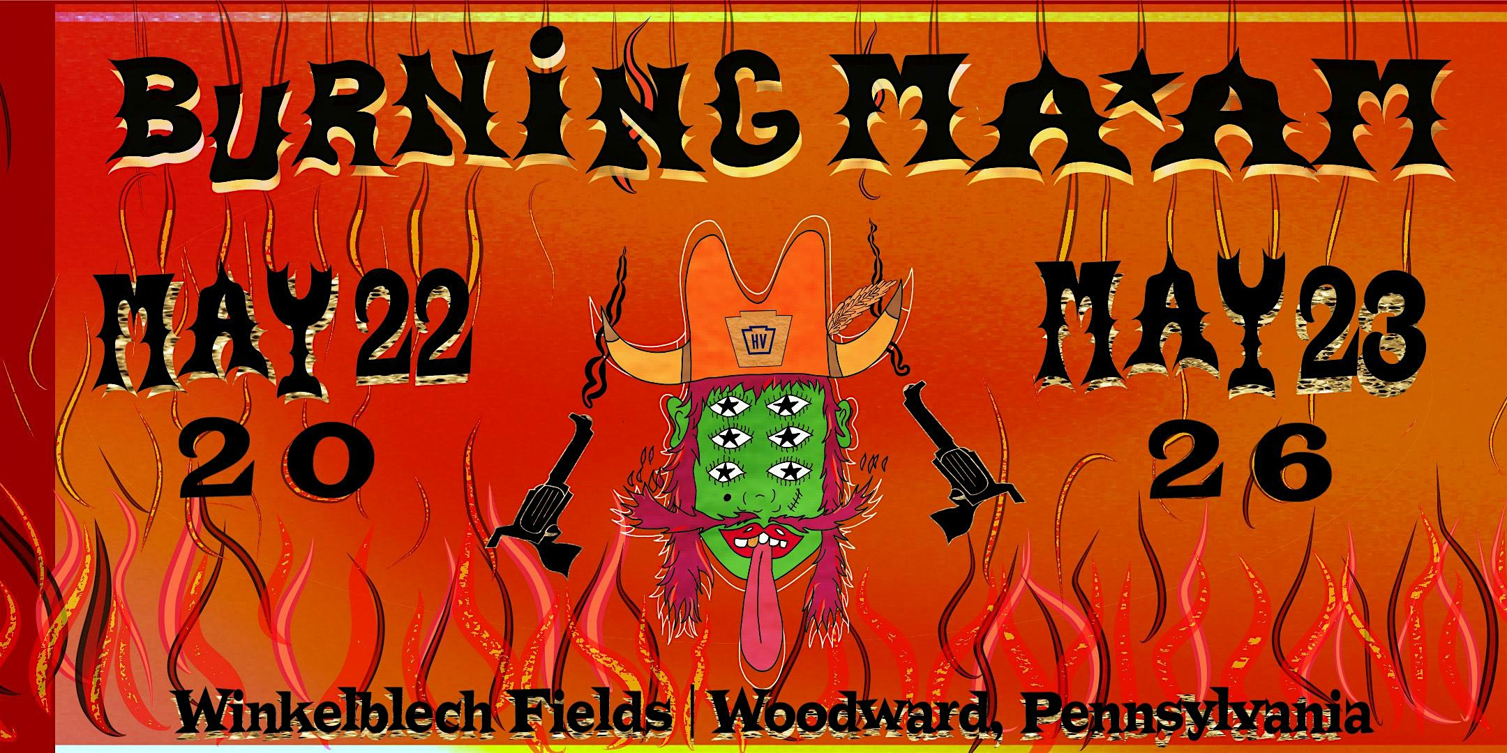 by admin13Feb BURNING MA’AM 2026 at Winkelblech Fields – Woodward, PA BURNING MA’AM 2026 at Winkelblech Fields – Woodward, PA 2 2 people viewed this event. A CENTRAL PA MUSIC FESTIVAL DEDICATED RAISING HELL AND BEING WELL THROUGH THE DIVINE POWER OF ROCK N ROLL Tickets-RSVP Link Date And Time Friday, May 22nd, 2026 06:00 PM (PST) Venue Winkelblech Fields Location 1104 Pine Creek Road, Woodward, PA 16882 Event Types Festival or FairMusic Event Category Pennsylvania Share With Friends Facebook Twitter Linkedin Xing Pinterest Share This Post:
