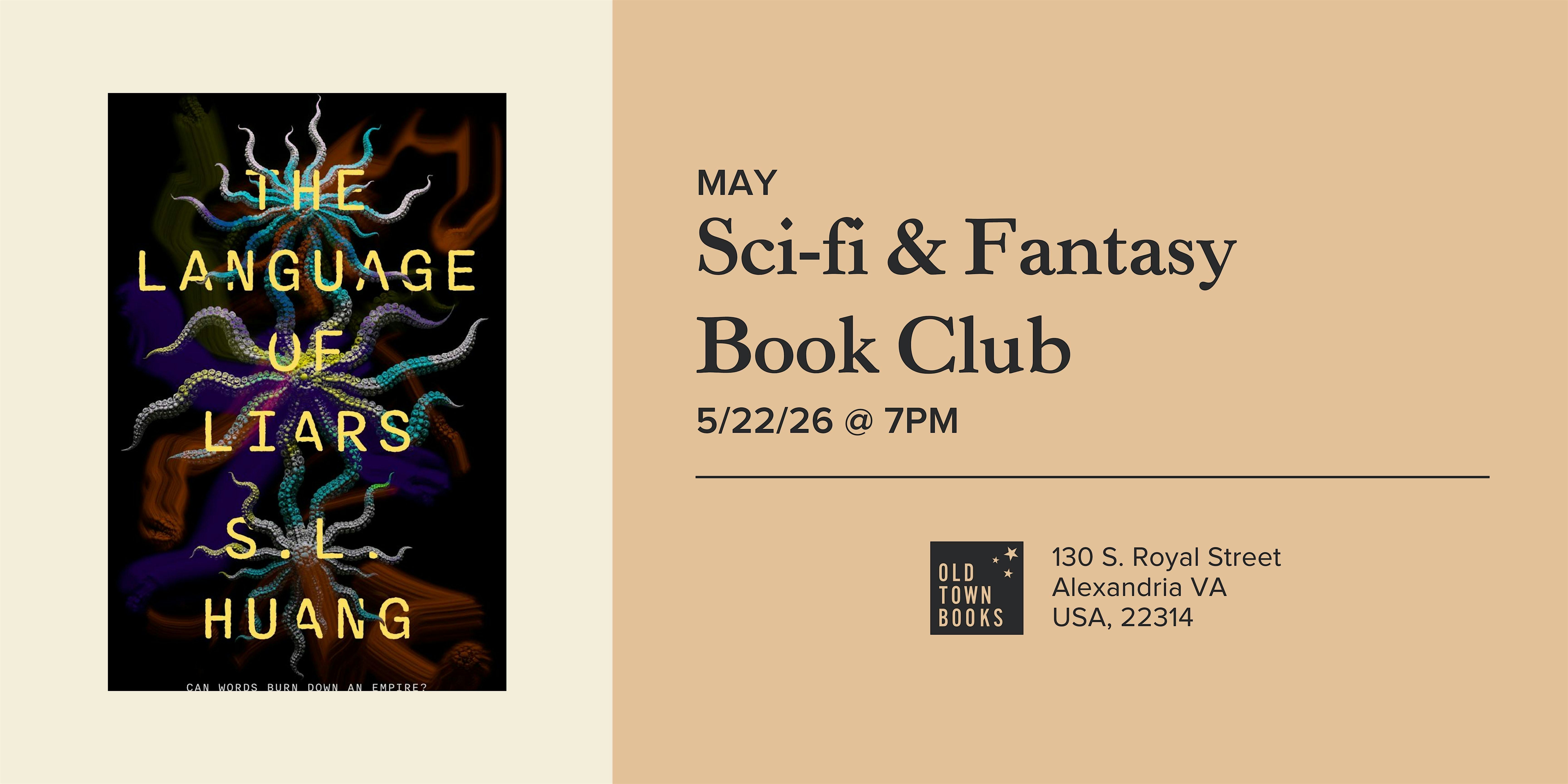 by admin13Feb May Sci-Fi & Fantasy Book Club: Language of Liars at Old Town Books – Alexandria, VA May Sci-Fi & Fantasy Book Club: Language of Liars at Old Town Books – Alexandria, VA 3 3 people viewed this event. Join us for a discussion of our May Sci-Fi & Fantasy Book Club pick: Language of Liars by S. L. Huang Tickets-RSVP Link Date And Time Friday, May 22nd, 2026 11:00 PM (PST) Venue Old Town Books Location 130 South Royal Street, Alexandria, VA 22314 Event Types Party or Social Gathering Event Category Virginia Share With Friends Facebook Twitter Linkedin Xing Pinterest Share This Post: