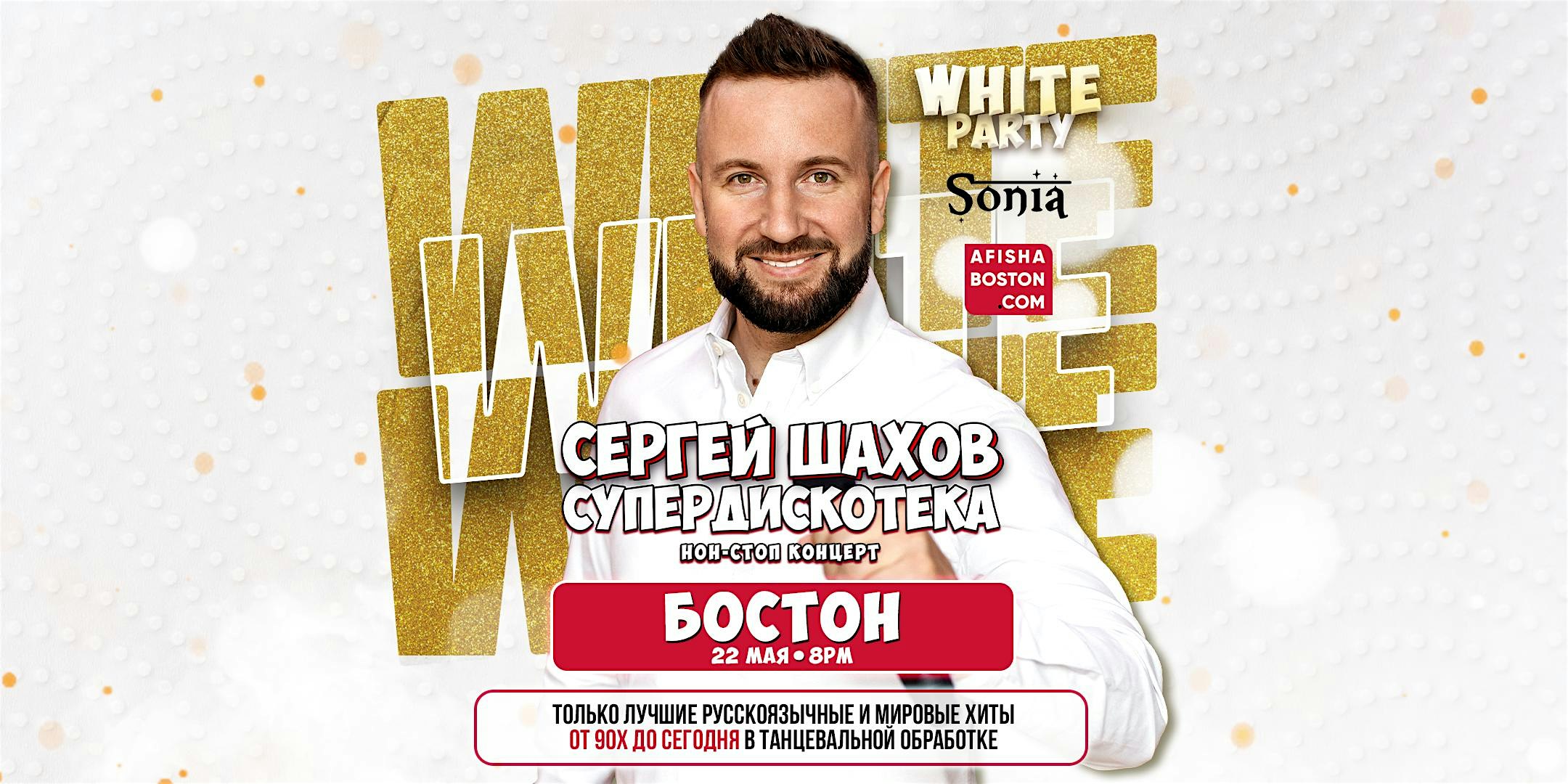 by admin13Feb [BOSTON] [WHITE PARTY] СУПЕРДИСКОТЕКА 90х и 2000х at Sonia Live Music Venue – Cambridge, MA [BOSTON] [WHITE PARTY] СУПЕРДИСКОТЕКА 90х и 2000х at Sonia Live Music Venue – Cambridge, MA 2 2 people viewed this event. Лучшие русскоязычные и мировые хиты от 90х до сегодня 18+ | DC | FC All ticket sales are final and non-refundable Tickets-RSVP Link Date And Time Saturday, May 23rd, 2026 12:00 AM (PST) Venue Sonia Live Music Venue Location 10 Brookline Street, Cambridge, MA 2139 Event Types Concert or PerformanceMusic Event Category Massachusetts Share With Friends Facebook Twitter Linkedin Xing Pinterest Share This Post: