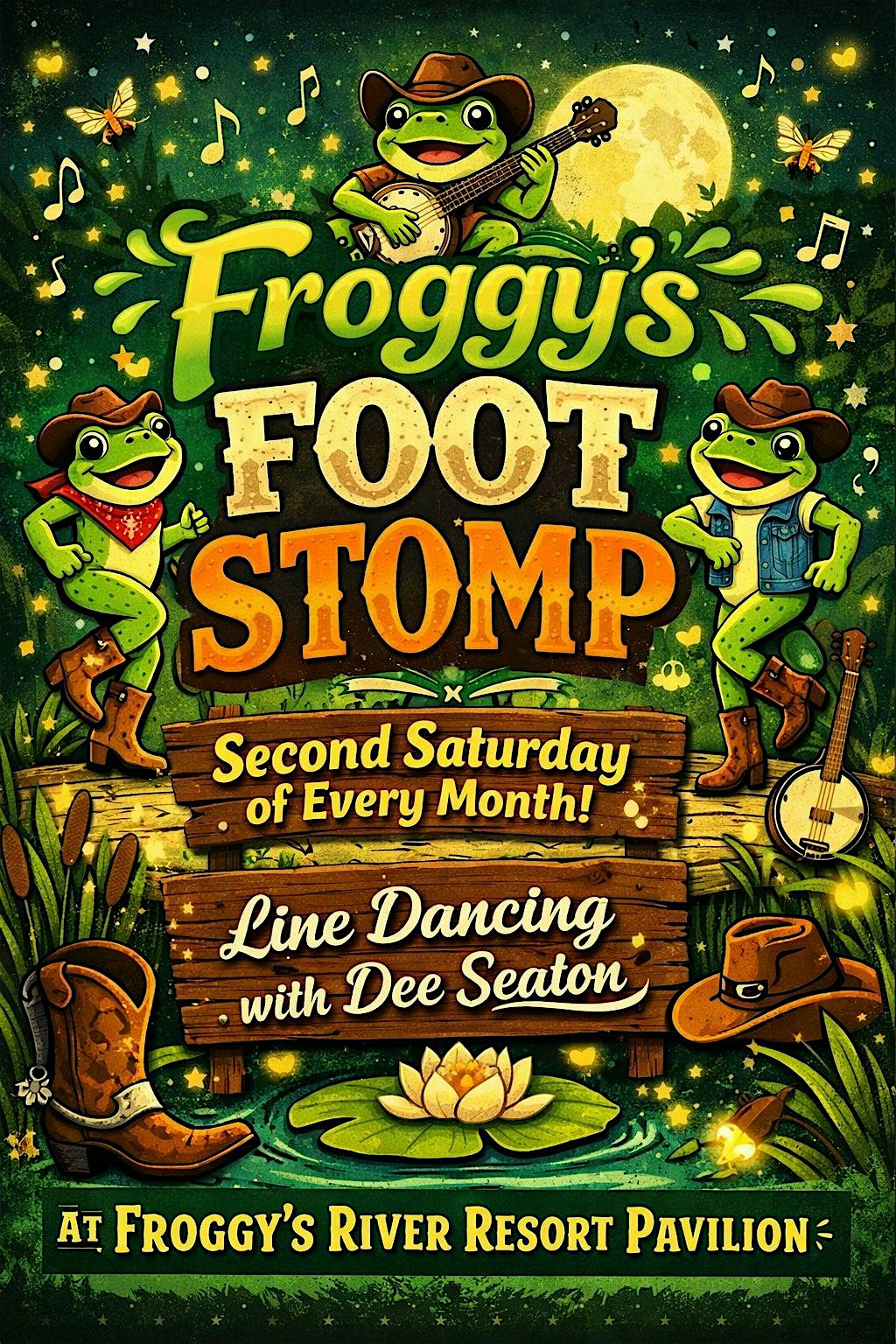 by admin13Feb Froggy’s Foot Stomp at Froggy’s River Resort – Richland, MO Froggy’s Foot Stomp at Froggy’s River Resort – Richland, MO 1 1 people viewed this event. Line Dancing Event led by Dee Seaton! Tickets-RSVP Link Date And Time Sunday, May 24th, 2026 12:00 AM (PST) Venue Froggy's River Resort Location 30399 Smokey Lane, Richland, MO 65556 Event Types MusicParty or Social Gathering Event Category Missouri Share With Friends Facebook Twitter Linkedin Xing Pinterest Share This Post:
