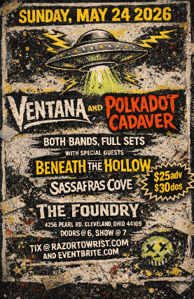 See Ventana, Polkadot Cadaver, Beneath the Hollow , Sassafras Cove Live in Cleveland on Sunday, May 24, 2026, Doors Open at 6:00 PM