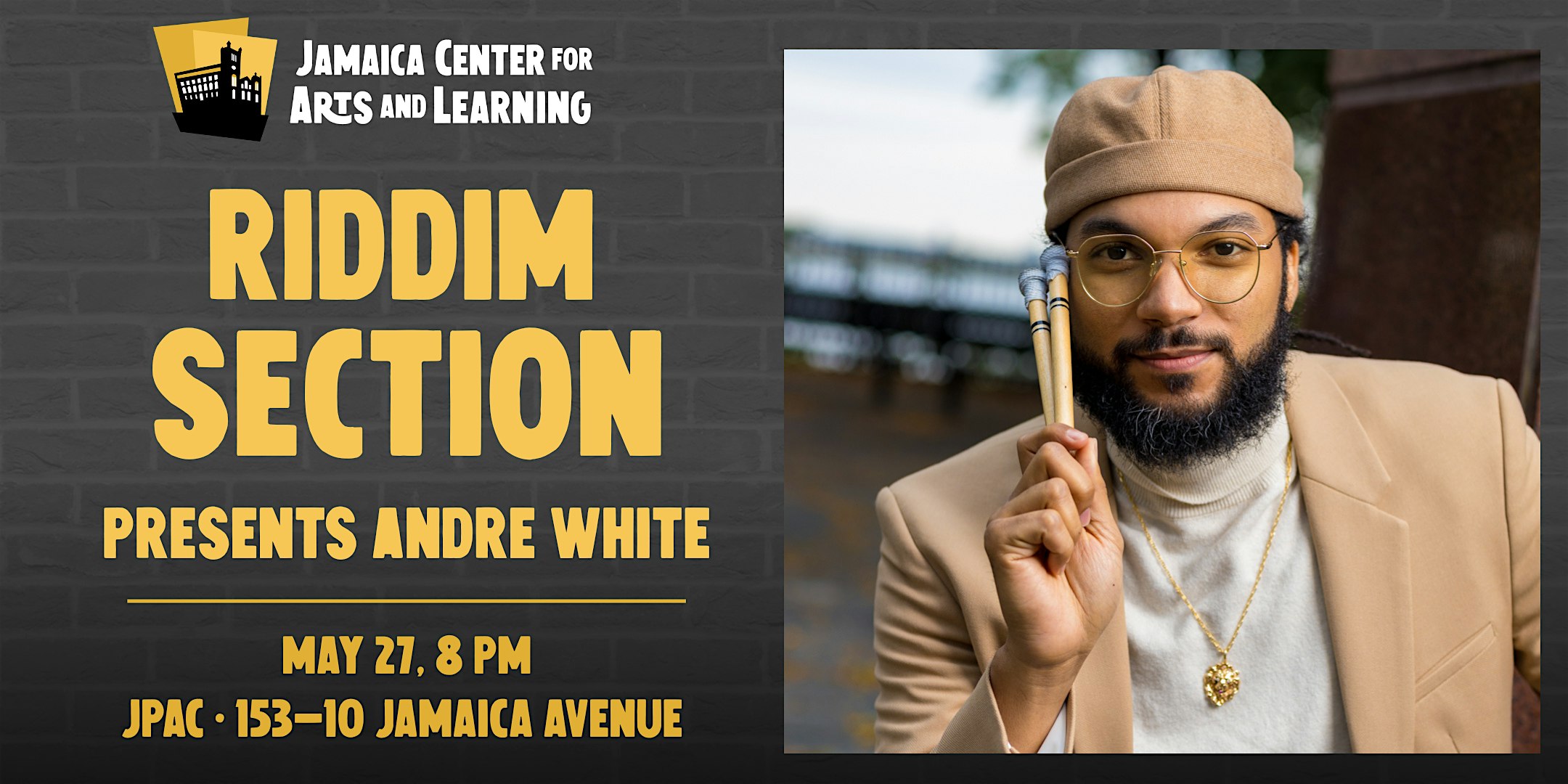 by admin13Feb Riddim Section Presents Andre White at Jamaica Performing Arts Center – Jamaica, NY Riddim Section Presents Andre White at Jamaica Performing Arts Center – Jamaica, NY 3 3 people viewed this event. JCAL’s music series continues with a highly anticipated concert! Tickets-RSVP Link Date And Time Thursday, May 28th, 2026 12:00 AM (PST) Venue Jamaica Performing Arts Center Location 153-10 Jamaica Avenue, Jamaica, NY 11432 Event Types Concert or PerformanceMusic Event Category New YorkNew York City Share With Friends Facebook Twitter Linkedin Xing Pinterest Share This Post: