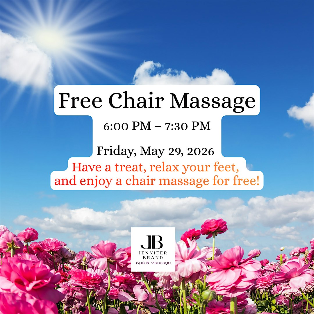 by admin13Feb Free Chair Massage at 2717 State Hwy K – O’Fallon, MO Free Chair Massage at 2717 State Hwy K – O’Fallon, MO 1 1 people viewed this event. Have a treat, relax your feet, and enjoy a chair massage for free! Tickets-RSVP Link Date And Time Friday, May 29th, 2026 11:00 PM (PST) Venue 2717 State Hwy K Location 2717 State Highway K, O'Fallon, MO 63368 Event Types Party or Social Gathering Event Category Missouri Share With Friends Facebook Twitter Linkedin Xing Pinterest Share This Post: