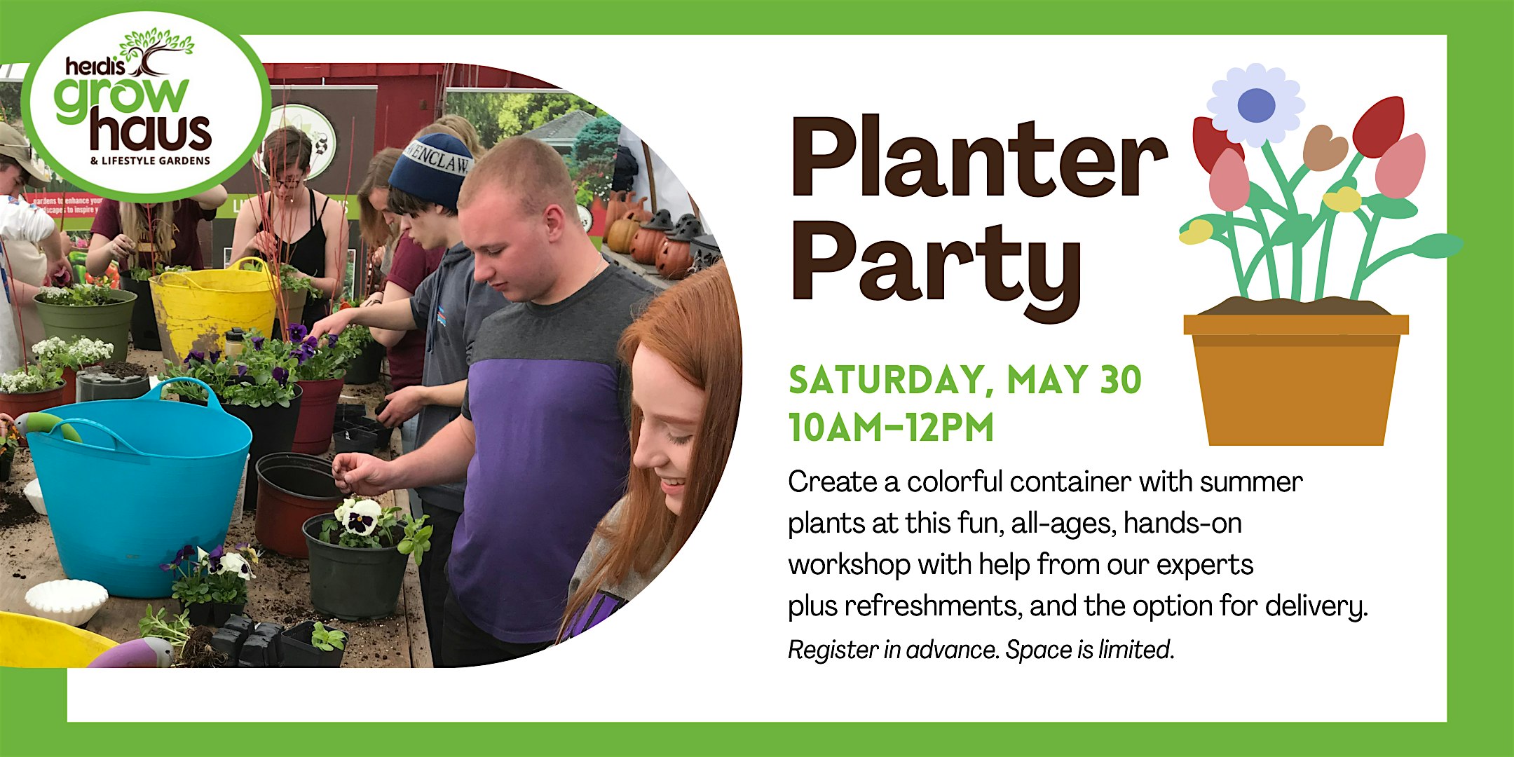 by admin13Feb Planter Party at Heidi’s GrowHaus & Lifestyle Gardens – Corcoran, MN Planter Party at Heidi’s GrowHaus & Lifestyle Gardens – Corcoran, MN 1 1 people viewed this event. Create a colorful, custom planter with the help of our expert designers. Choose from our selection of containers or bring your own! Tickets-RSVP Link Date And Time Saturday, May 30th, 2026 03:00 PM (PST) Venue Heidi's GrowHaus & Lifestyle Gardens Location 7555 County Road 116, Corcoran, MN 55340 Event Types Party or Social Gathering Event Category Minnesota Share With Friends Facebook Twitter Linkedin Xing Pinterest Share This Post: