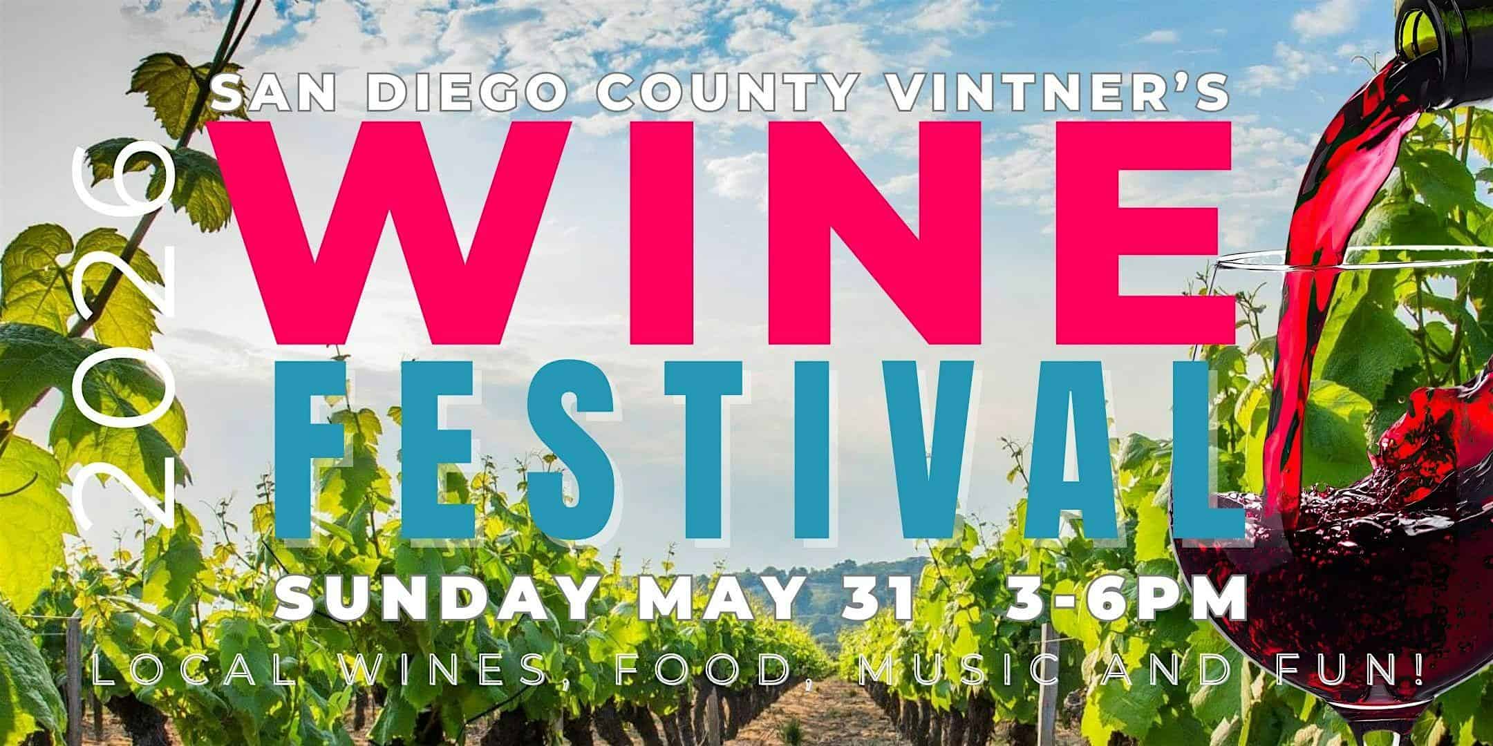 by admin14Feb 2026 San Diego County Vintners Wine Festival at Bernardo Winery – San Diego, CA 2026 San Diego County Vintners Wine Festival at Bernardo Winery – San Diego, CA 2 2 people viewed this event. San Diego County 2026 Vintners Annual Wine Festival, at the Bernardo Winery, Sunday May 31st Tickets-RSVP Link Date And Time Sunday, May 31st, 2026 10:00 PM (PST) Venue Bernardo Winery Location 13330 Paseo Del Verano Norte, San Diego, CA 92128 Event Types Festival or FairFood & Drink Event Category CaliforniaSan Diego Share With Friends Facebook Twitter Linkedin Xing Pinterest Share This Post: