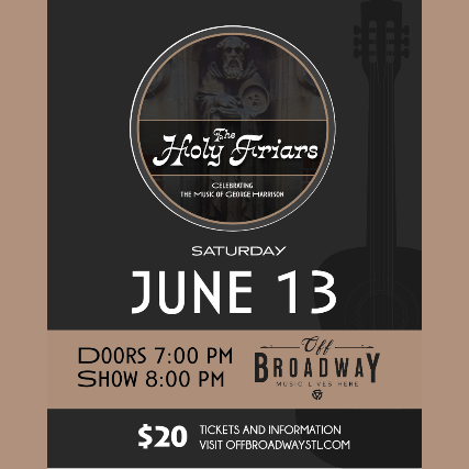 THE HOLY FRIARS: CELEBRATING THE MUSIC OF GEORGE HARRISONSAT. June 13, 2026Doors 7PM | Show 8PM$20 GENERALGeneral Onsale begins now!All Ages (21+ with valid ID to drink, $3 minor surcharge under 21)In order to combat third-party resale, we have recently enacted a delivery delay on all tickets purchased online. You will receive an order confirmation immediately after your purchase, and your tickets will be emailed to you/made available in your Ticketweb account TWO DAYS before the event.