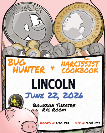 See Bug Hunter & The Narcissist Cookbook Live in Lincoln on Monday, June 22, 2026, Doors Open at 7:00 PM