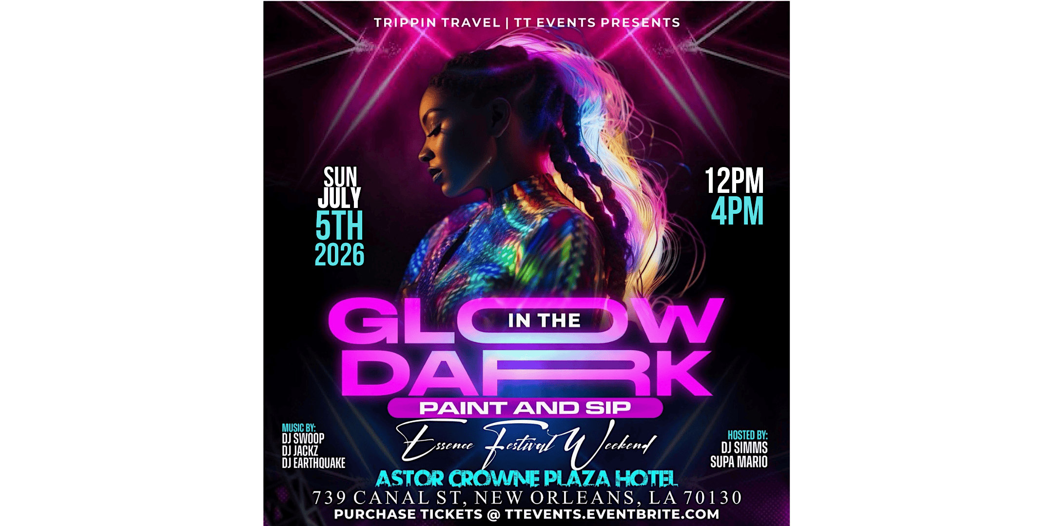 by admin27Feb R&B GLOW PAINT & SIP N’awlins FEST WEEKEND 2026 at Astor Crowne Plaza – New Orleans, LA R&B GLOW PAINT & SIP N’awlins FEST WEEKEND 2026 at Astor Crowne Plaza – New Orleans, LA 1 1 people viewed this event. R&B GLOW PAINT & SIP 2026 Tickets-RSVP Link Date And Time Sunday, July 5th, 2026 @ 12:00 PM Location 739 Canal St Event Types Essence FestivalMusicParty or Social Gathering Event Category LouisianaNew Orleans Share With Friends Facebook Twitter Linkedin Xing Pinterest Share This Post: