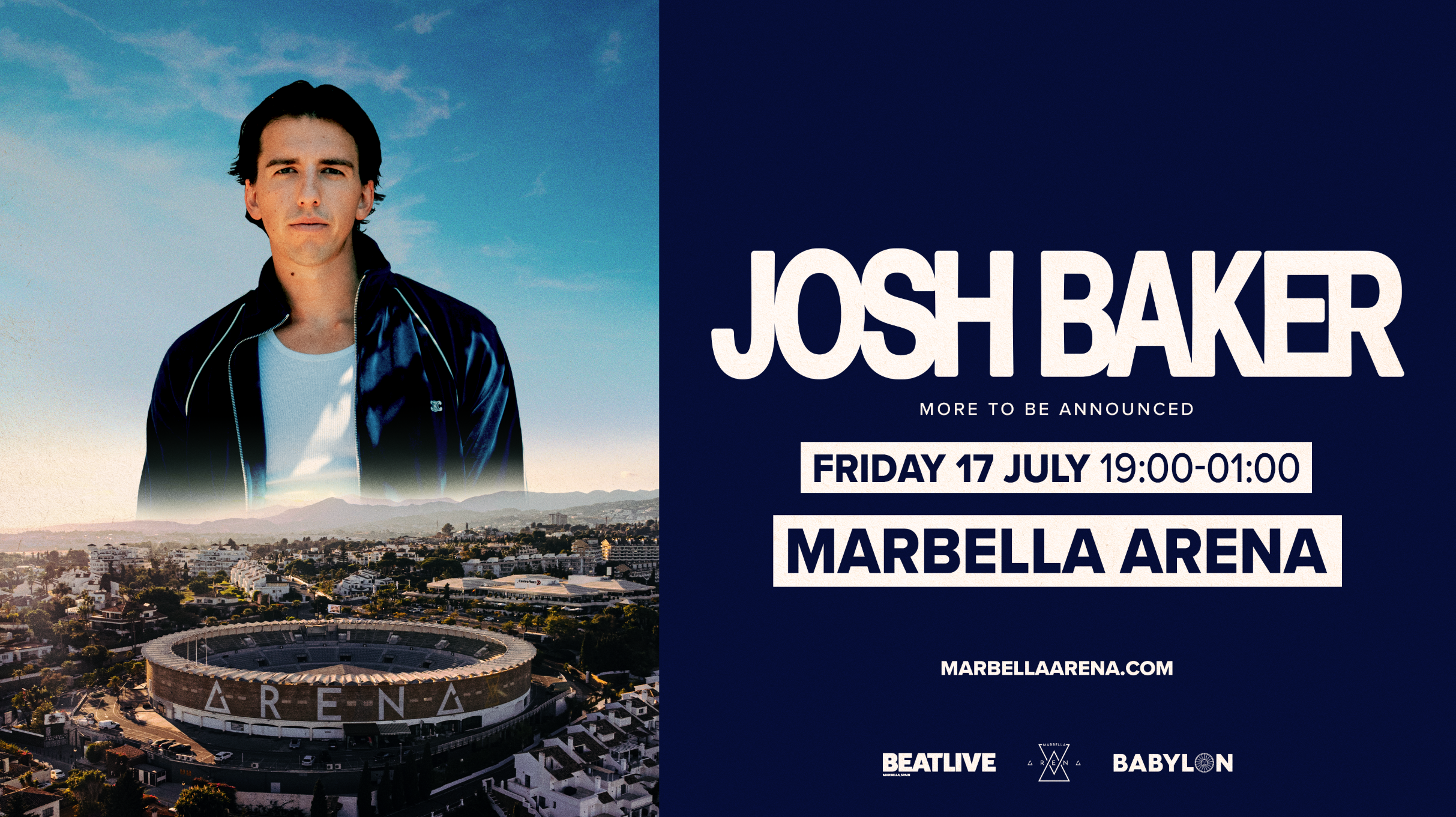 Searching for Josh Baker tickets doesn’t have to be stressful. At LocalTixs.co, we list every upcoming Josh Baker event through detailed event pages that include ticket links, so fans can buy the best seats at the best price. Not only can you find important event details for this event, but also for all upcoming events at Marbella Arena, and across Marbella, Spain, ensuring you never miss a show. So always think of LocalTixs.co when you’re looking for Josh Baker tickets near you or planning a trip for a special occasion. LocalTixs provides an easy way to browse local events, dates, and venues.