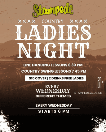 Join us every Wednesday for Ladies Night at Stampede, 2430 S Havana St Doors open at 6 PM, The free line dancing lessons with Laurie Burkhardt start at 6:30PM We have a different theme every Wednesday, make sure you follow us on Facebook and Instagram @stampede_ladies_night Join us for dancing, country music, great ambience and the best ladies night party! ℹ For more details visit www.stampedeclub.net#stampede #Stampede2026 #LadiesNightStampede #stampedeladiesnight #countrymusic #LineDancingFun #stampedecountry #linedancing #lineda #linedancers #Countrymusic #LaurieBurkhardt