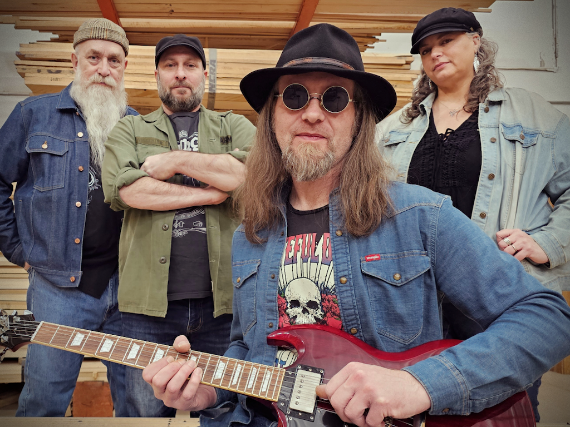Mudhouse Gang is a band of musical misfits riding together to forge an original brand. Born in Akron Ohio, Rick Phillips leads the gang down roads of blues, old-school country and classic hard rock. Ricks unique lyrics s tight vocal harmonies, Chucks unconventional bass stylings and Dougs meticulous drumming. HistoryRick Phillips and Doug Ackerman formed the band along with second drummer Scott Aspinall in 2017 while searching for a new inspired musical direction. This trio released a self-titled debut album in September of 2018. Rick and Doug then became a duo in 2019 and released a second album Get Yer Demons Out! in October of 2021. In 2022, mutual friend and bassist Chuck Wingerter started jamming with the band further evolving the gangs sound and live performance. This lineup released the singles Blues Out My Window in 2023 and Doin The Gas in 2024. Another mutual friend, Becky Tomasi made several guest appearances with Mudhouse adding sweet harmony vocals, officially joining the gang in 2024. Rick (originally from Akron, OH) has played lead guitar for folkadelicfunkpop band Waterband in the early 2000s and is still a current member of the Akron based folkabilly band Blonde Boy Grunt 2017) living in Germany as lead guitarist for the psychedelic rock band Simeon Soul Charger who became a massive cult success across Europe. Throughout his career, Rick has opened the stage for Daryl Davis (pianist for Chuck Berry), The Pretty Things, Parliament Funkadelic, Richie Havens, Hot Tuna, Kansas, The Crazy World of Arthur Brown, D.A.D. (Disneyland After Dark), Stefan Dettl (of La Brassbanda) Guru Guru and Fernando Saunders (bassist for Lou Reed).