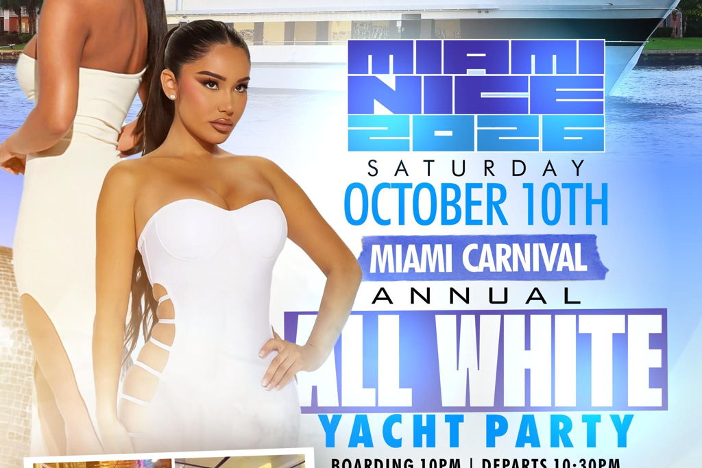See MIAMI NICE 2026 MIAMI CARNIVAL WEEKEND ANNUAL ALL WHITE YACHT PARTY Live in Hollywood on Saturday, October 10, 2026, Doors Open at 10:00 PM