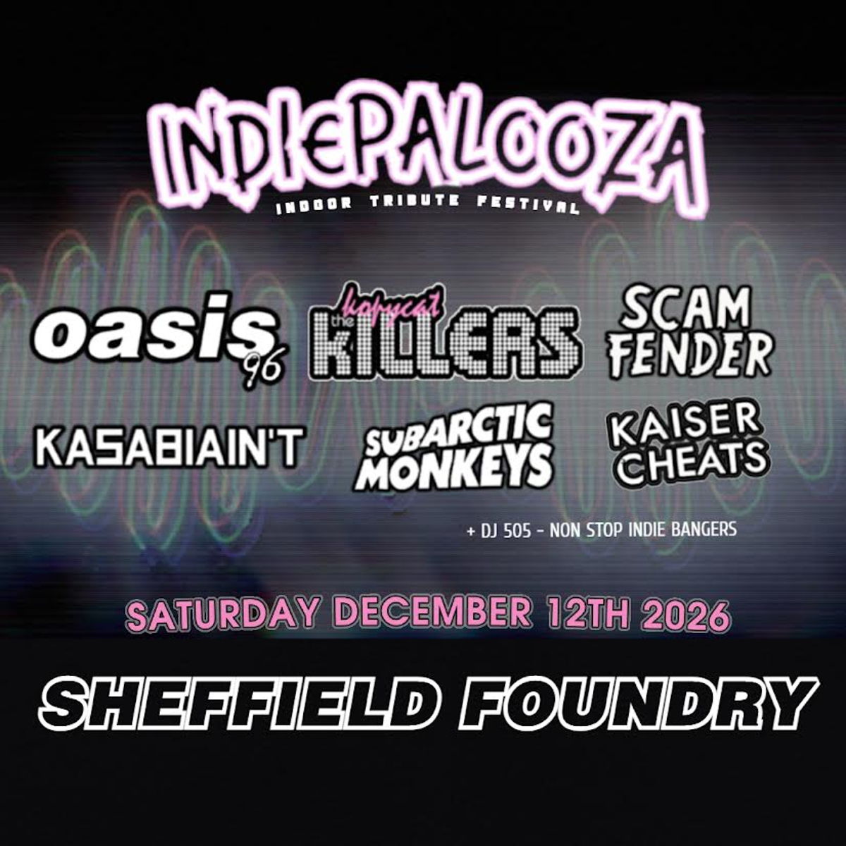 See Indiepalooza: Killers v Monkeys v Fender v Oasis v Kasabian v Kaiser Live in Sheffield on Saturday, December 12, 2026, Doors Open at 5:00 PM