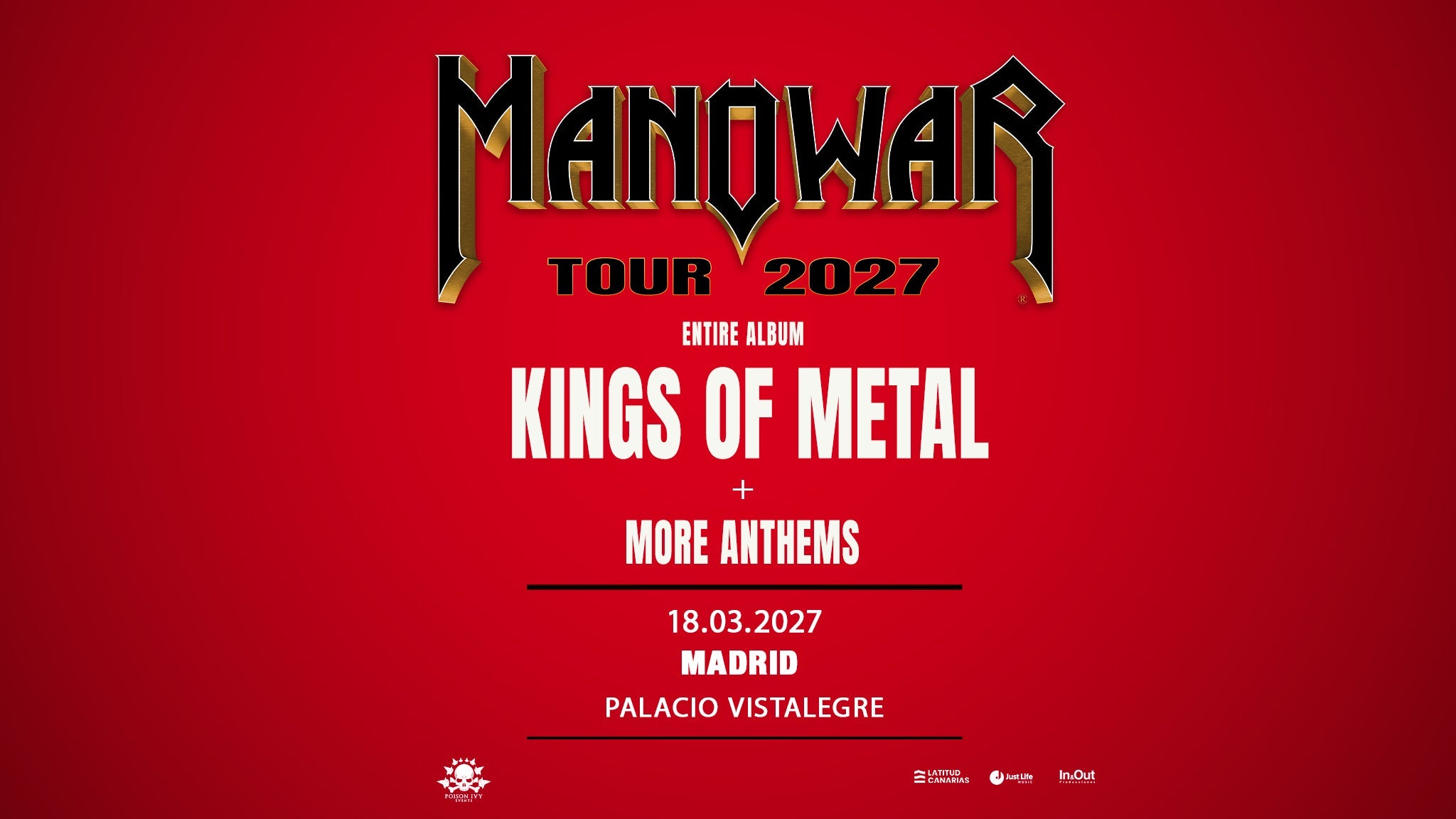 See Manowar Live in Madrid on Thursday, March 18, 2027, Doors Open at 9:00 PM